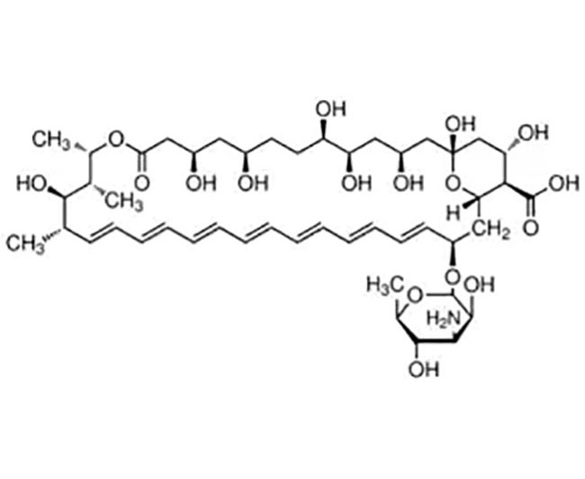 化学名:(1R,3S,5R,6R,9R,11R,15S,16R,17R,18S,19E,21E,23E,25E,27E,29E,31E,33R,35S,36R,37S)-33- [(3-amino-3,6-dideoxy-β-D-mannopyranosyl)oxy]-1,3,5,6,9,11,17,37-octahydroxy-15,16,18-trimethyl-13-oxo-14,39-dioxabicyclo[33.3.1]nonatriaconta-19,21,23,25,27,29,31-heptaene-36-carboxylic acid