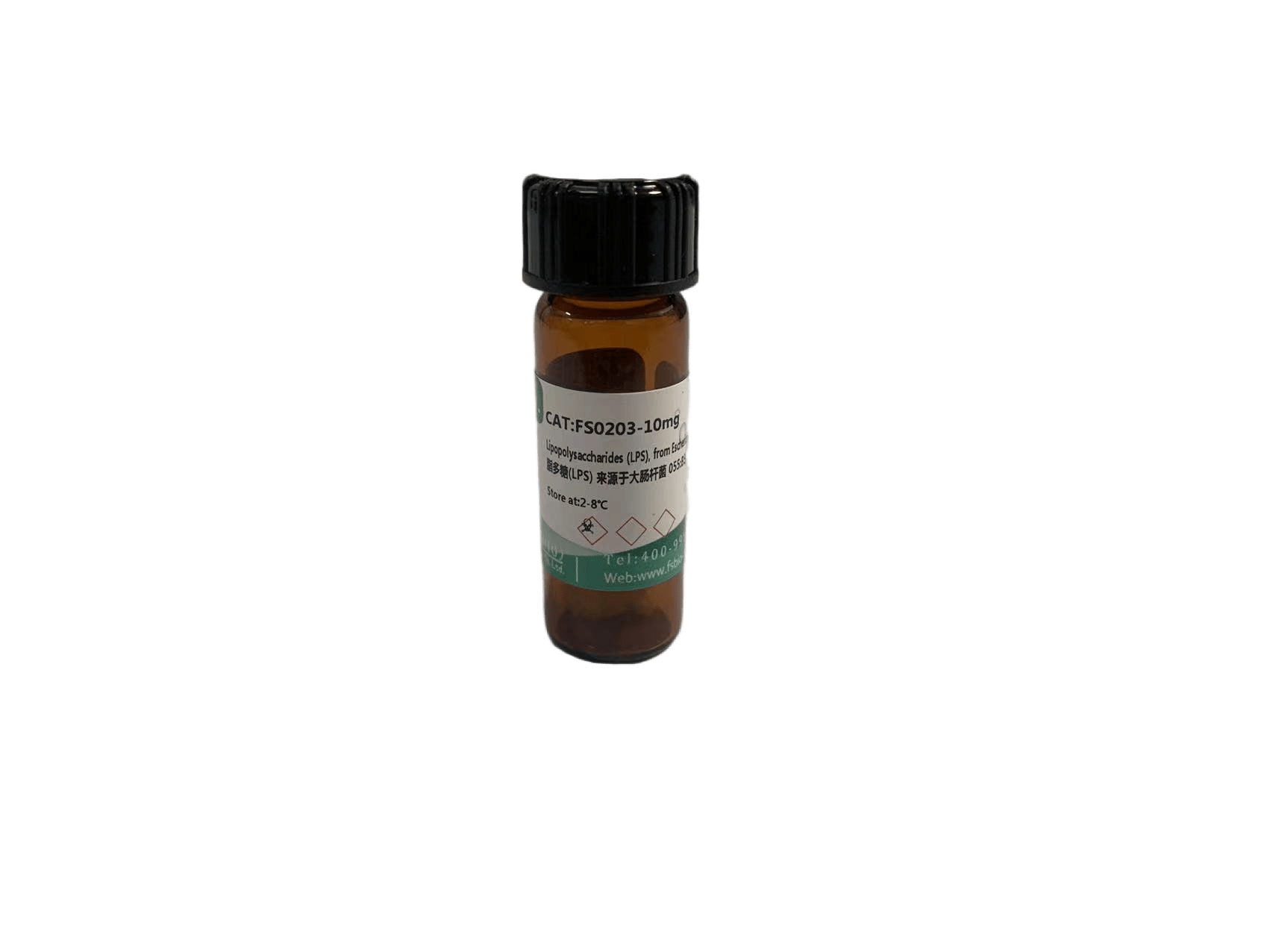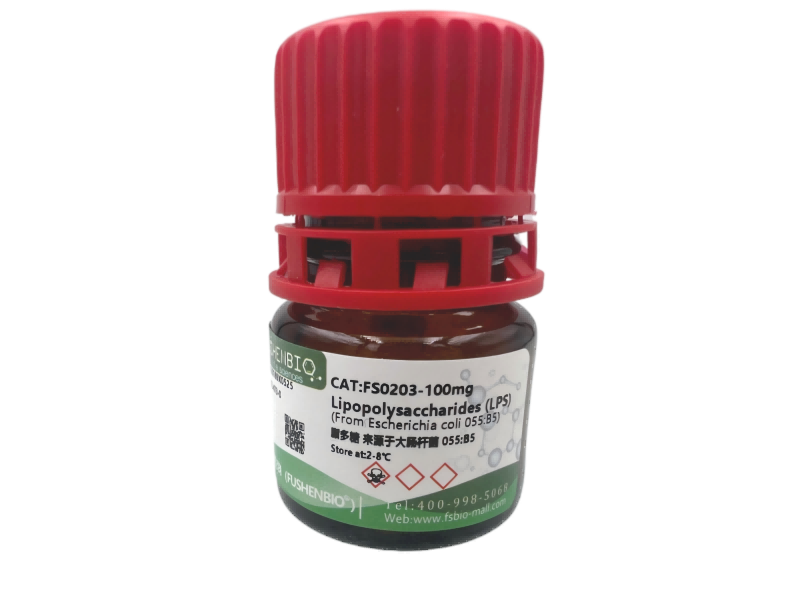本品来源于大肠杆菌血清型055:B5,经苯酚抽提所得,菌株为CDC 1644-70。内毒素水平≥500,000 EU /mg,经分析,1ng相当于5EU(鲎试剂法)和10EU(显色法)。本品可用来刺激人腹膜巨噬细胞(1ng/ml)和马腹膜巨噬细胞(1-100ng/ml)。我司还提供来源于大肠杆菌血清型O111:B4的脂多糖(LPS)(CAT:#FSY0328)。