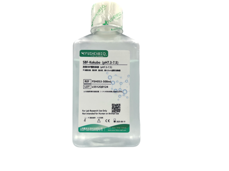 1、将SBF大量元素溶解于900ml去离子水中,用稀盐酸或氢氧化钠调整pH值为7.3~7.5 , 待完全澄清后,再加入钙盐,充分混合溶解定容至1升,调整最终pH值为7.3~7.5即可;如有必要,可以过滤后使用。[注]该产品粉剂配置成溶液后保质期会大大缩短,过滤除菌后,在4℃条件下可稳定保存3~6个月,在室温条件下极易变质。