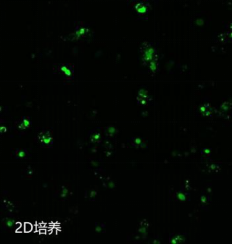 下图为:人初级视网膜细胞3D 培养7 天,细胞增殖活跃,并形成较大的细胞团,而2D 培养的细胞单个生长,且增殖缓慢。