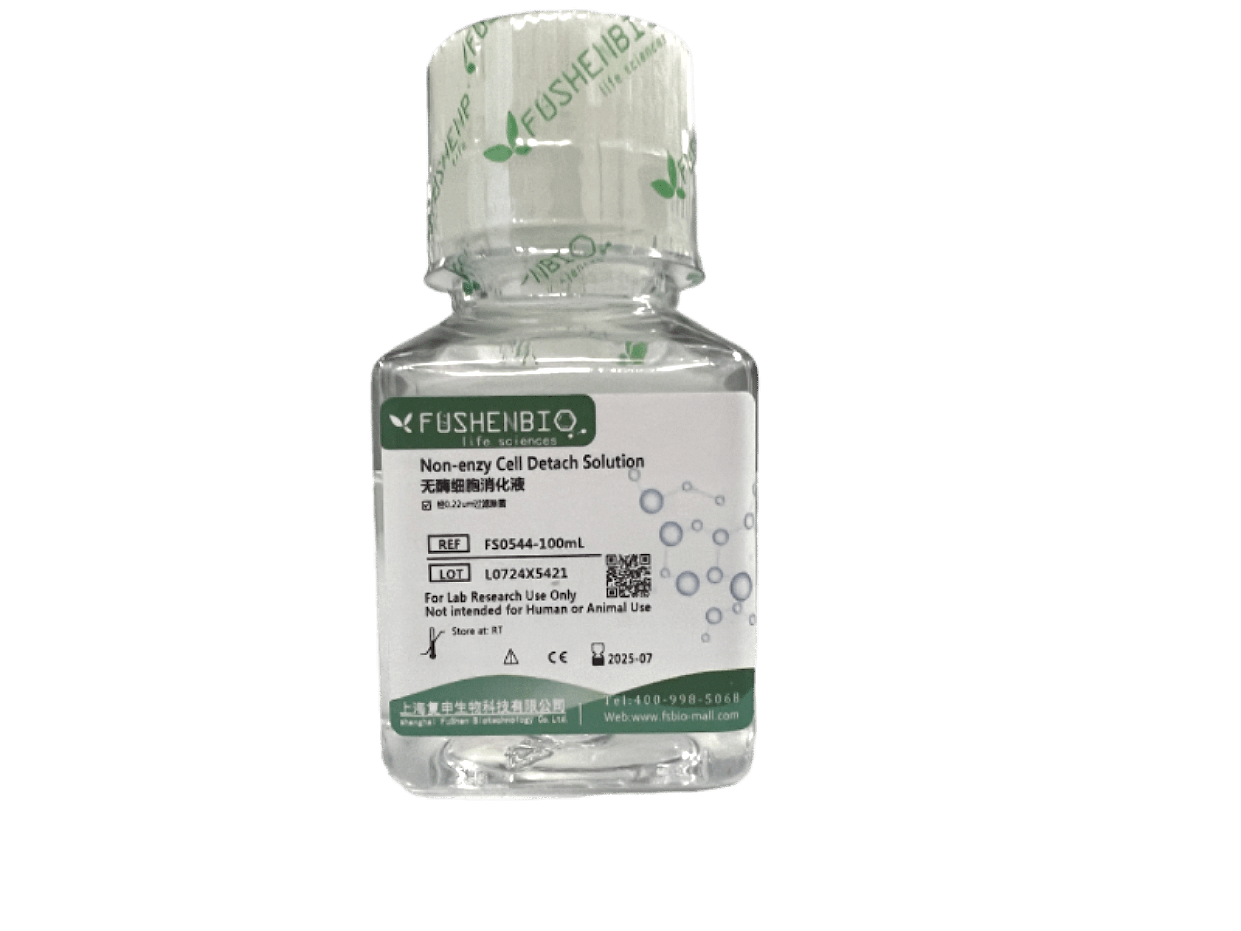 无酶细胞消化液(Non-enzy Cell Detach Solution)不含胰蛋白酶等蛋白消化酶类,但能有效地使贴壁细胞与培养瓶皿表面脱离而达到分离细胞目的,