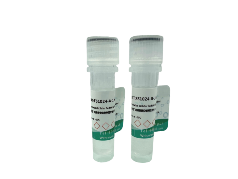 FUSHENBIO改进型广谱磷酸酶抑制剂混合物(100×)为磷酸酶抑制剂 Cocktail 是含有8种广谱磷酸酶抑制剂的混合物,高效抑制蛋白提取物中的酸性、碱性、丝氨酸/苏氨酸和酪氨酸磷酸酶。与同类产品(一般含3~4种抑制剂)相比,可提供更全面的磷酸酶抑制能力。