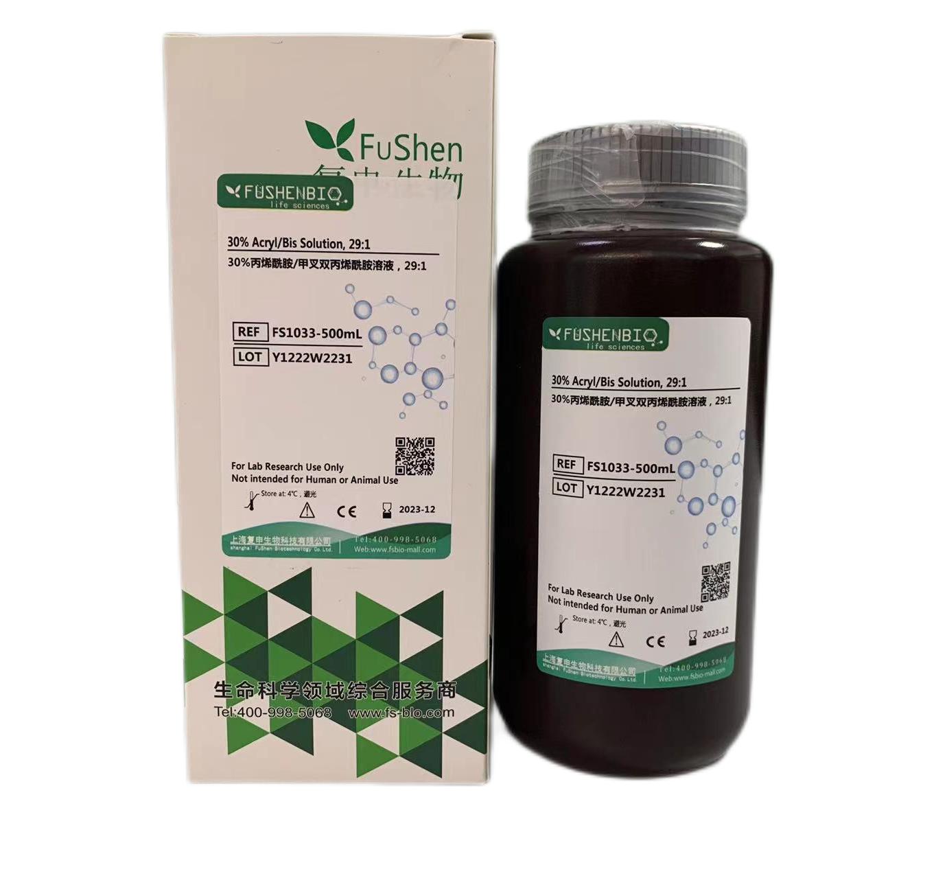 本品为30% Acr-Bis (29:1)即为含30% acrylamide-bisacrylamide的水溶液,其中acrylamide和bisacrylamide的比例为29:1。