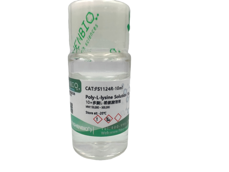 多聚赖氨酸(poly-lysine)是一种带正电荷的氨基酸聚合物,能够结合于 DNA,红细胞膜或任何带负膜电荷蛋白,是一种非特异性的细胞粘附因子,促进细胞吸附到固相基质上。作用机理在于其可增强细胞粘度较低,使用越容易;分子量较高,粘度较高,提供的粘附位点也较多。分子量>30,000 的聚赖氨酸表面的负电荷离子和固相基质表面(如细胞培养皿,载玻片等)的静电相互作用。当吸附到培养表面后,多聚赖氨酸提高用于细胞结合的阳离子结合位点数。多聚赖氨酸分子量的大小与粘度相关,即分子量较低,适用于促进细胞粘附到固体基质。