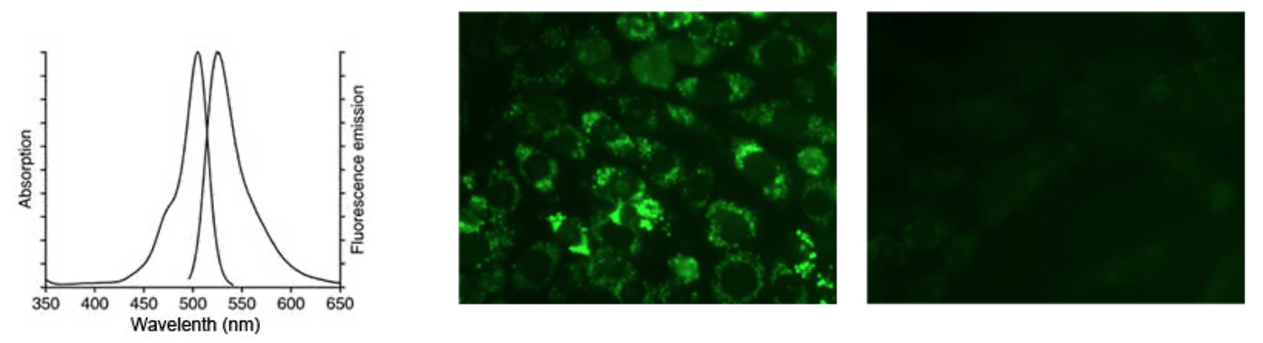 使用488nm激发波长,525nm发射波长,实时或逐时间点检测刺激前后荧光的强弱。DCF的荧光光谱和FITC非常相似,可用FITC的参数设置检测DCF。