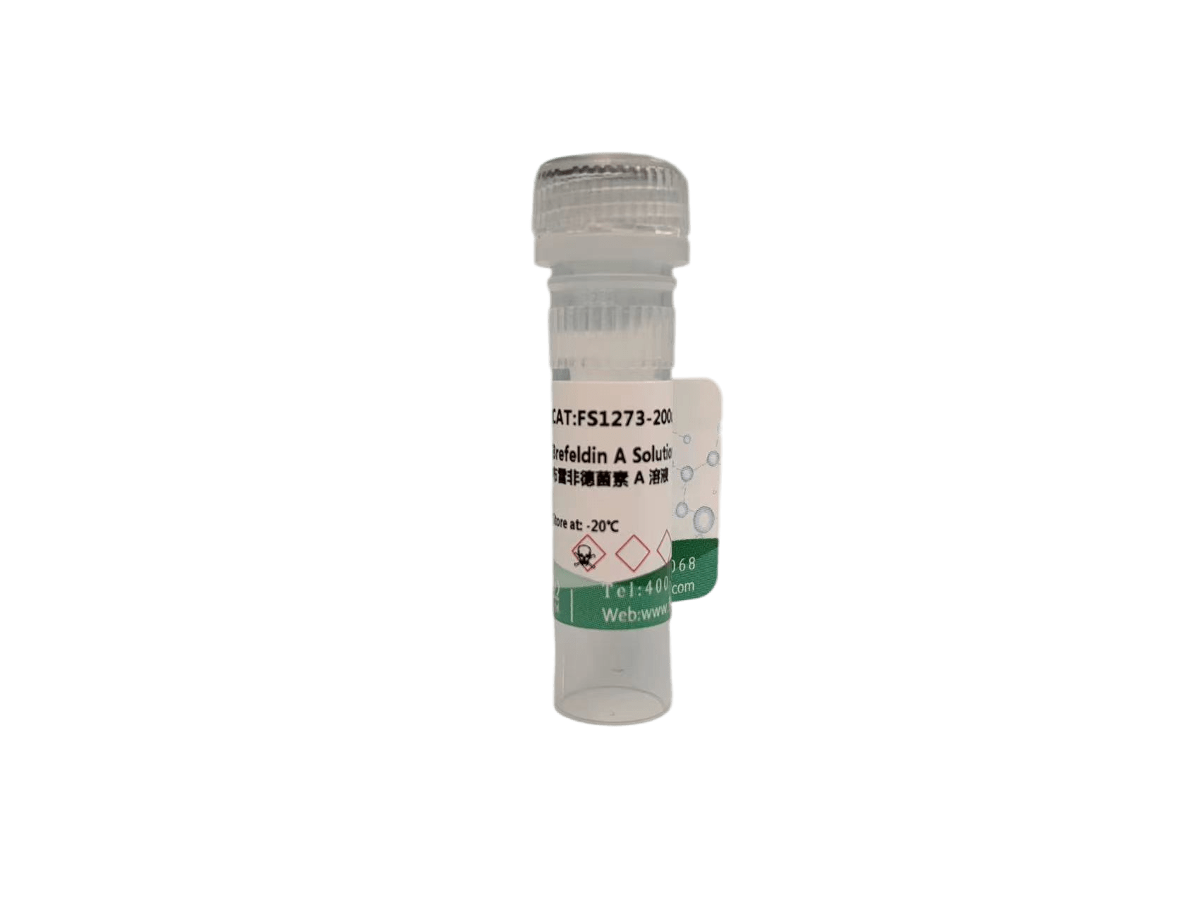 Brefeldin A,简称BFA,一种常用的可逆性蛋白转运抑制剂,是一种真菌代谢产物,可破坏高尔基体的结构并抑制其功能,广泛用作一种蛋白转运抑制剂,特异性且可逆的阻断蛋白质从内质网转运到高尔基体,并且促使蛋白质在内质网累积。研究显示,BFA能够阻断GTP依赖性的ADP-核糖基化因子(ARF)与高尔基体膜间的相互作用,进而抑制外被体(coatomer)组装入膜上。神经内分泌肿瘤细胞中,BFA通过活化Caspase-3来诱导细胞凋亡;前列腺癌细胞中,BFA靶向细胞周期来抑制细胞生长。BFA是ARF蛋白的抑制剂,且可激活神经鞘磷脂循环(sphingomyelin cycle)。