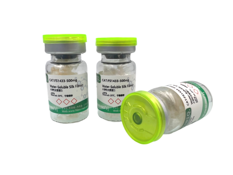 本品货号货号(CAT:#FS1433)水溶性丝素蛋白(Water-Soluble Silk Fibroin)非无菌包装,粉剂溶解后可通过0.22 μm滤膜过滤,避免高压灭菌。(CAT:#FS1432)为可溶性丝素蛋白(Freeze-dried soluble Silk Fibroin)为无菌冻干粉包装,