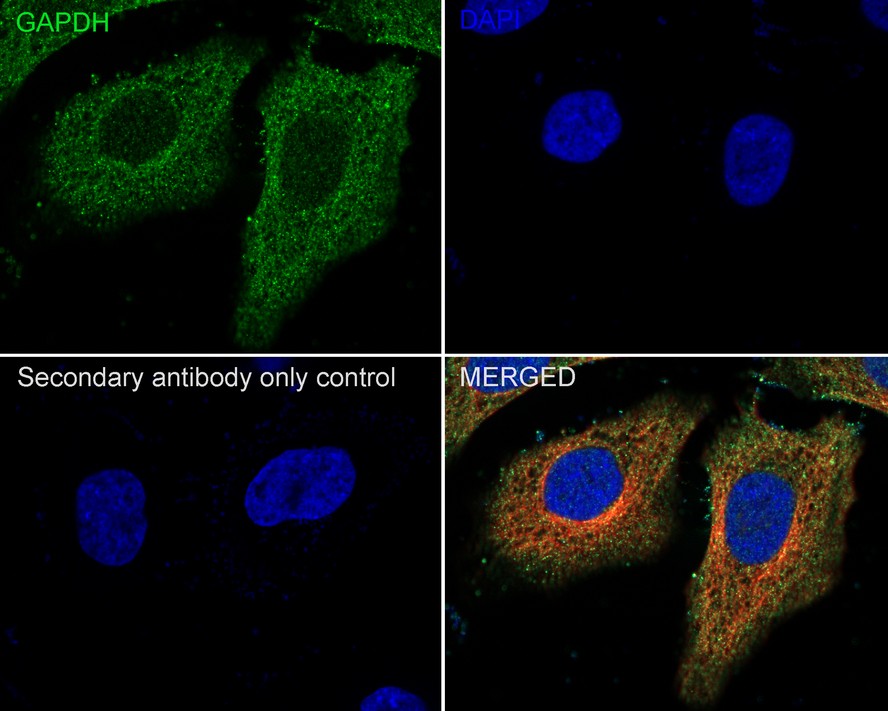 Glyceraldehyde 3 phosphate dehydrogenase (GAPDH) is well known as one of the key enzymes involved in glycolysis. GAPDH is constitutively abundant expressed in almost cell types at high levels, therefore antibodies against GAPDH are useful as loading controls for Western Blotting. Some pathology factors, such as hypoxia and diabetes, increased or decreased GAPDH expression in certain cell types.